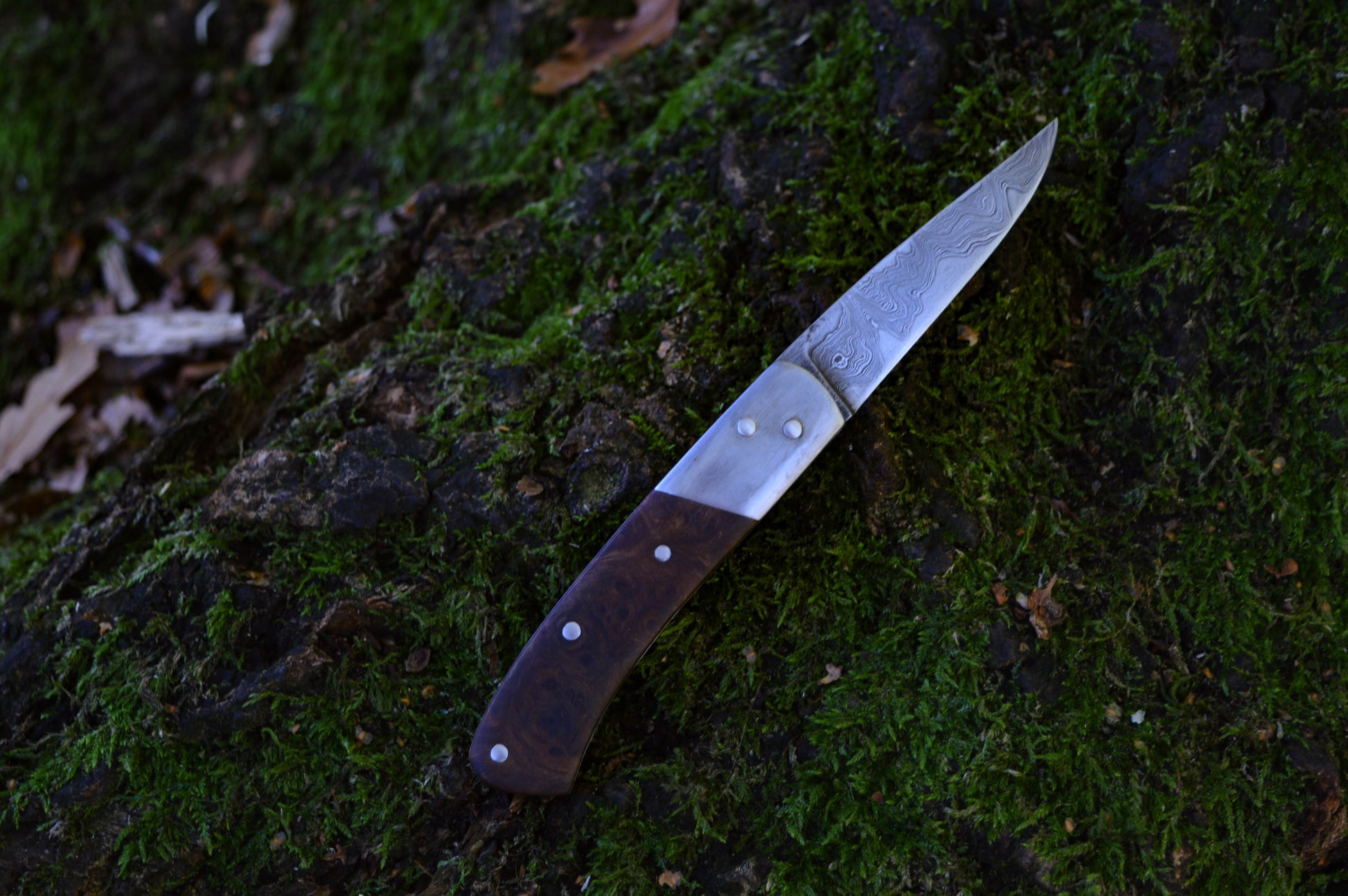 Hand-forged Folding Knife / Pattern-welded blade / Wrought Iron bolsters & Bocote Scales / Heavy duty slipjoint / Non-locking UK Legal Carry