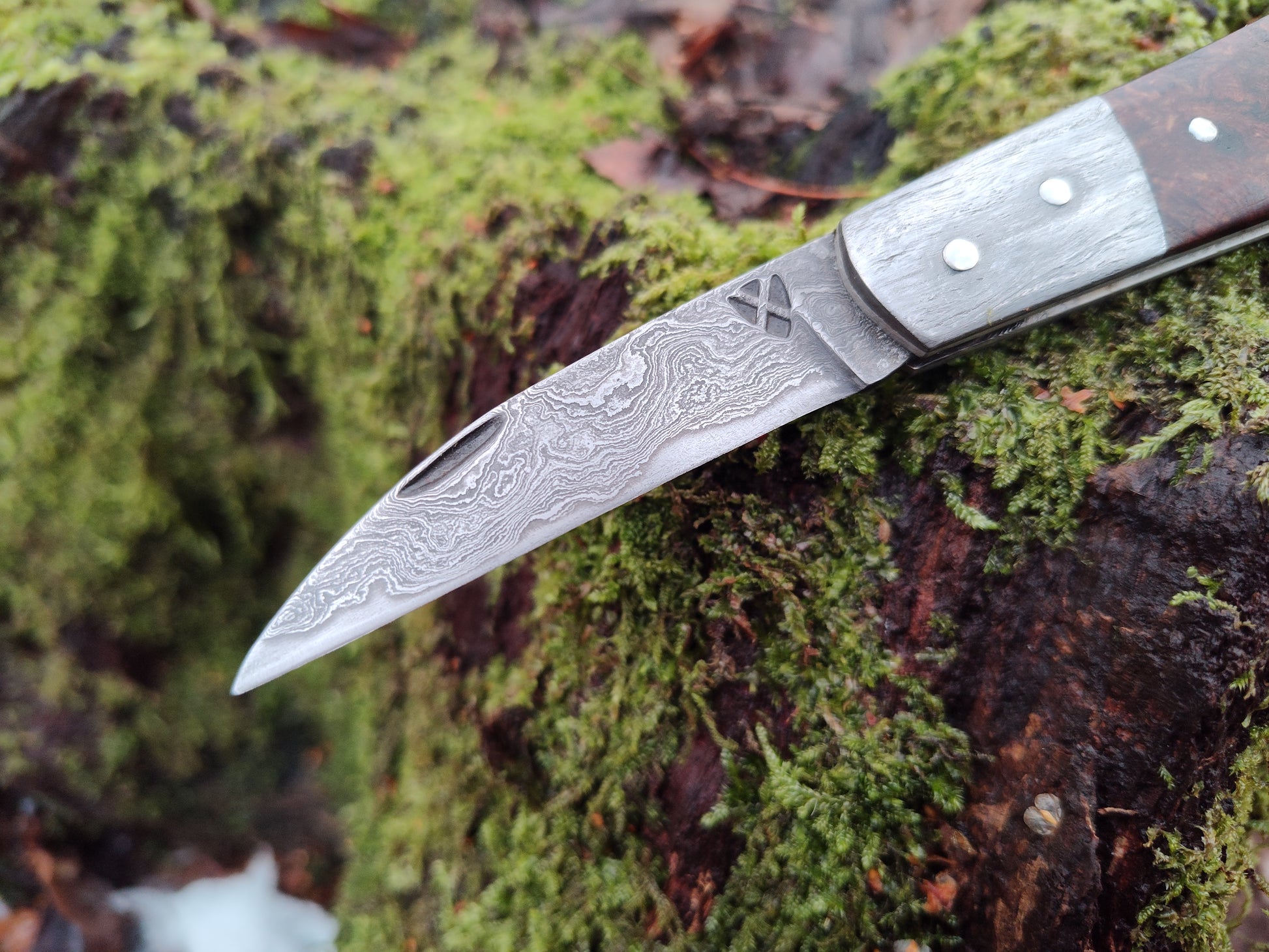 This knife is a UK legal folding knife that is part of my new range of folders that feature a type of slipjoint mechanism called a 'cran force' or forced notch slipjoint. Whilst still inspired by Anglo-Saxon and Viking age folding knives, these folders are a fusion of the historial designs and traditional slipjoint patterns. I wanted to create a UK legal folding knife that was still strong enough to safely use for heavier duty tasks like bushcrafting and woodworking.