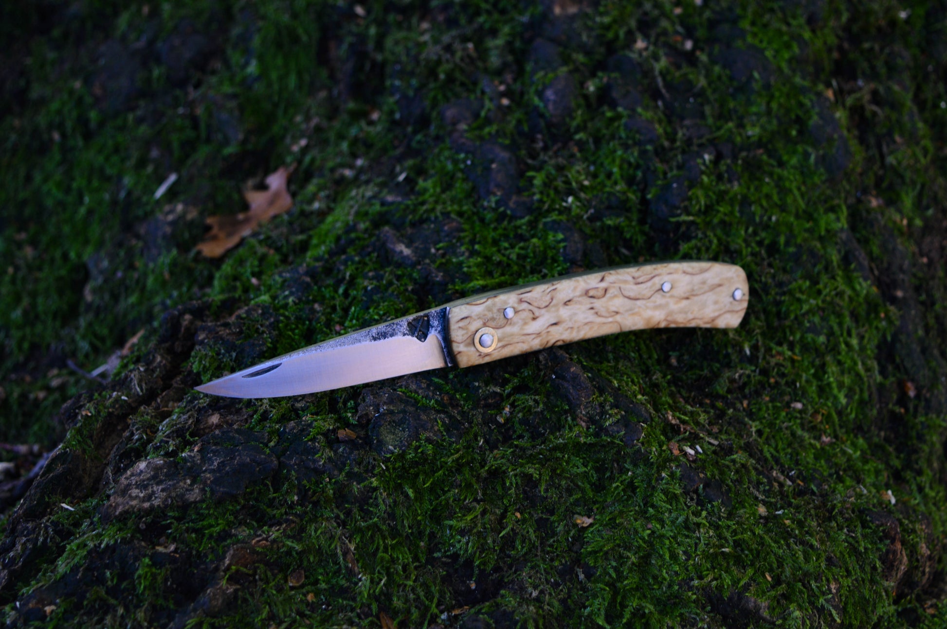 Hand-forged Folding Knife / Carbon Steel Blade/ Titanium Liners with Masur Birch Scales / Heavy duty slipjoint / Non-locking UK Legal Carry